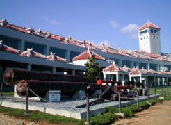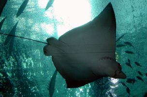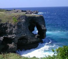 守礼門と万座毛〜ゾウさんに見える?風の強い万座毛を見学し、パイナップル園でパイナップルをほうばったりして、今回のメイン、海洋博公園に。ここの『沖縄美(ちゅ)ら海水族館』は必見。スケールが大きく、沖縄らしい美しい魚や大きなサメやマンタなど、おそらくいま、沖縄で一番オススメの場所だろう(人工物のなかで)。見学後、公園内をうろついていたが、とにかく暑い!半分熱中症になりかけたらしく、体がほてって熱い。沖縄に来てから思うが、気温はそれほどでもなくても(30℃)、陽射しが強く、肌に突き刺すようだ。9月の末でもこの調子なのだから、8月に来たらたいへんだろう。クラクラしつつも、なんとか集合時間になったので、バスに戻る。