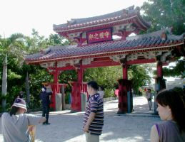 ここからは後半になり、ガイドさんもゆかちゃんから玉城さんにかわる(下の名前覚えてないあたりどっちがお気に入りだったかわかるような・・・オヤジになったな。俺も(涙))。玉城さんは少し先輩らしくそれなりにうまい、が、まだ若いのでたまにとちったりする。オリオンビール本社のある名護を過ぎ、途中、東南植物楽園で園内見学、ドラゴンフルーツを食べてみた。名前よりもさっぱりしていて、アケビの味を薄くしたような感じだ。その後ゴザを通過。ここは今でも米兵の街といった様子だが、駐留者も減ってきているためか、ずいぶん閉じてしまった店も多いようだ。最後のショッピングスポット、プラザハウスを出た頃には陽も傾き、夕暮れとなってきた。国道58号の渋滞にあいながら、ゆかちゃんと玉城さん2人が『涙(なだ)そうそう』や『花』など、歌を歌ってくれる。ちょっと恥じらいをもって歌っている感じがかわいい感じだが、なんだか心に残った。ゆかちゃん、玉城さん、運転手さんありがとう。次来るときは完璧なガイドをしてくれることでしょう(いつの話だ?)。ところで、守礼門で撮った記念写真は注文とかなかったけど、どうなっちゃったんでしょう?忘れちゃったんじゃないんでしょうか!?
