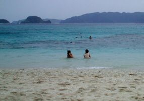 那覇市の泊港(通称:とまりん)に翌朝行く。座間味への船は満席だと言われたが、運良くキャンセル待ちが出て、無事乗船。島に着き、古座間味ビーチまで歩く。小さな峠道だが、夏の山道をこんなにゆっくり歩くのは何年ぶりだろう。小学生の頃を思い出す。いかにも夏休みという感じだ。さて、ビーチに着いた。実は、海で泳ぐのは初めてである。なんと言っても山国出身だから 。少し緊張して入ってみるが、実に気持ちいい。水中メガネで海中をのぞくと、白い砂、珊瑚礁、その間を熱帯魚が泳いでいる。うひゃ〜、これぞ沖縄に来たって感じだね〜。シーズンもはずれかかっているので程よいすき具合。疲れたら砂風呂(風)にしてみたり、沖縄の海を満喫した。帰りの船では波がちょっと強く、甲板にずっといた我々は潮水で全身びしょびしょになり、那覇に着く。びしょびしょのまま那覇の街を歩く。ここで職場の先輩と合流。壺屋焼物(やちむん)博物館や焼物の店をのぞいたりして、夕暮れになり、また飲みに行った。いつもはそんなに飲まないのだが、雰囲気が飲む、という感じだし、つまみはうまいし、なんと言っても安いので毎晩でも苦にならなかった。先輩はホテルに帰り、我々は友人の家に戻る。全身がヒリヒリしてシャワーを浴びるのも一苦労。今度は日焼け止めを持って行こう。