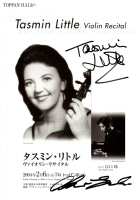 ステージに上がったコヴァセヴィッチは思っていた以上に小柄で人のよさそうな白髪のおじさんだった。前半のバッハのパルティータ第4番とベートーヴェンのソナタ第32番は居眠り半分だったが、後半のシューベルトは寝ている暇などなかった。これぞ世界的なピアニストと言わしめる表現の豊かさだった。間合いのうまさ、テンポの取り方、ピアノの強弱から来る表現の濃淡。このおっさん、伊達にピアノ弾いてるだけではないなと思った。30分を越える演奏中、まさに演奏に釘付け状態だった。生でこの曲の演奏を聴いてここまでよかったからには他のピアニストがこの曲を弾く機会があったらまた行くしかないだろう。さらに、その翌々週の2月6日、今度はヴァイオリン・リサイタルに足を運んだ。タズミン・リトルという英国の女流ヴァイオリニストのリサイタルだ。なぜ彼女のリサイタルに行ったか?それは現在目下作成中のエルガーのヴァイオリン・ソナタのページのなかで、最も注目すべき演奏は彼女の録音だったからだ。もちろん、エルガーだけではない。EMIに彼女が録音している協奏曲はどれも名演で気に入っていた。しかし、それは特筆するほどではなく、現役ヴァイオリニストのなかではしっかりと地に足の着いた自分好みの演奏をしているヴァイオリニストという程度の認識だった。しかし、このエルガーは凄い。壮絶だった。あっという間に私はリトルのファンになった。
